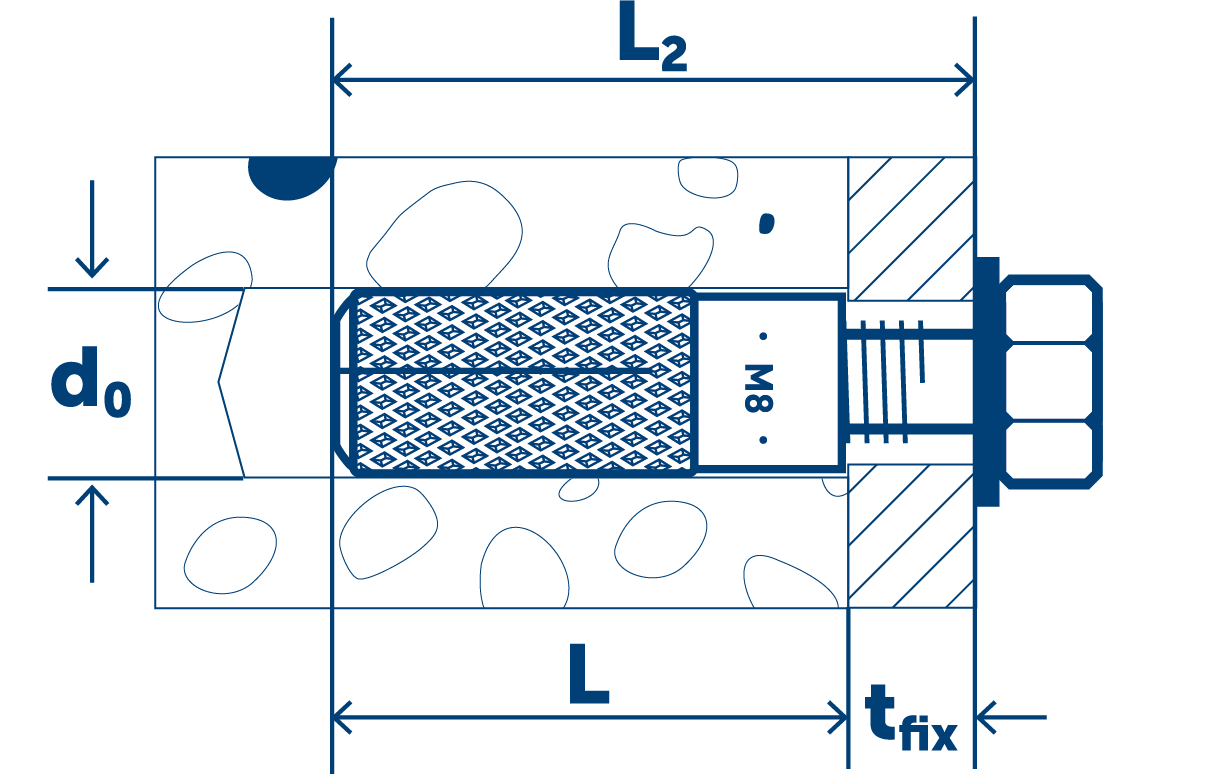 - Расчетная глубина анкеровки (Hnom)170
