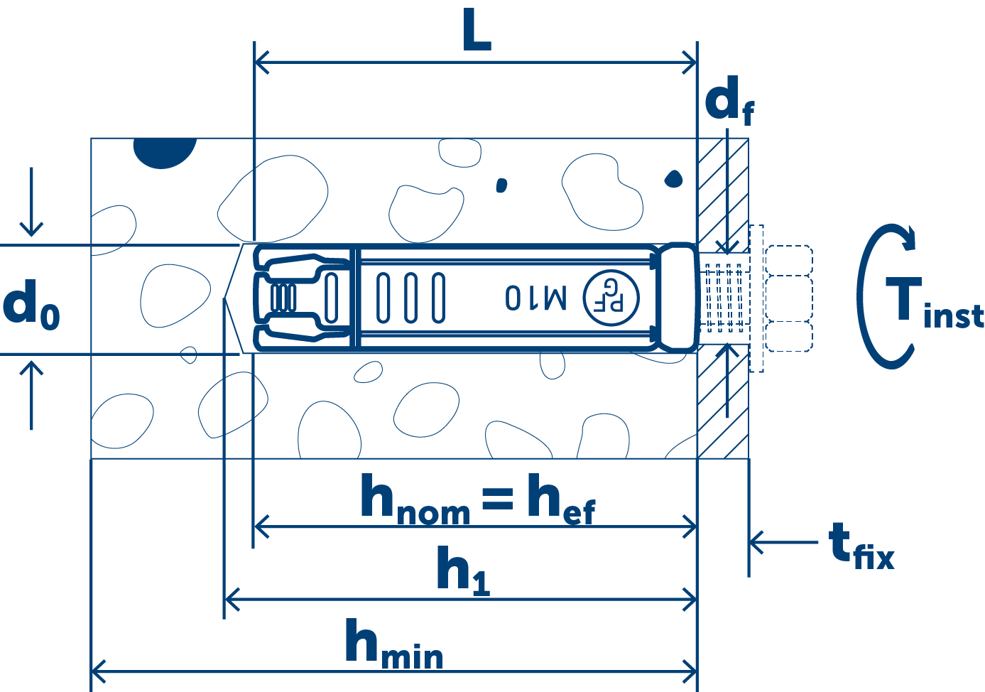 - Расчетная глубина анкеровки (Hnom)100